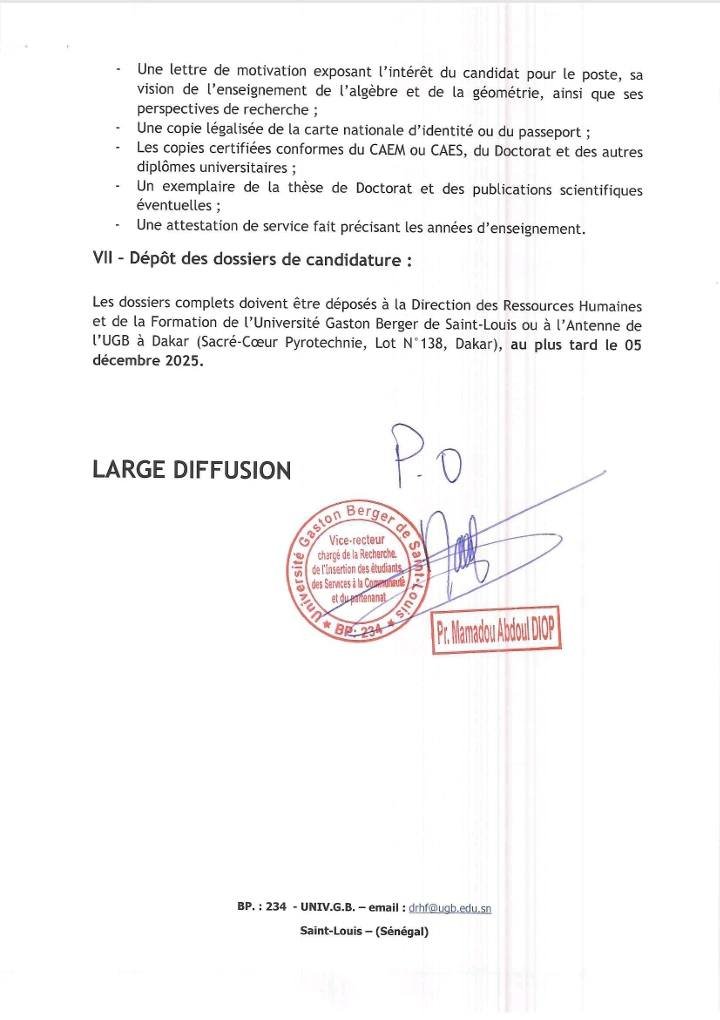 L’Universitรฉ Gaston Berger de Saint Louis lance les ๐๐ฉ๐ฉ๐๐ฅ๐ฌ ๐ฬ ๐๐๐ง๐๐ข๐๐๐ญ๐ฎ๐ซ๐๐ฌ pour le ๐ซ๐๐๐ซ๐ฎ๐ญ๐๐ฆ๐๐ง๐ญ ๐โ๐๐ง๐ฌ๐๐ข๐ ๐ง๐๐ง๐ญ(๐)๐ฌ-๐๐ก๐๐ซ๐๐ก๐๐ฎ๐ซ(๐)๐ฌ ร ๐ฅ’๐๐