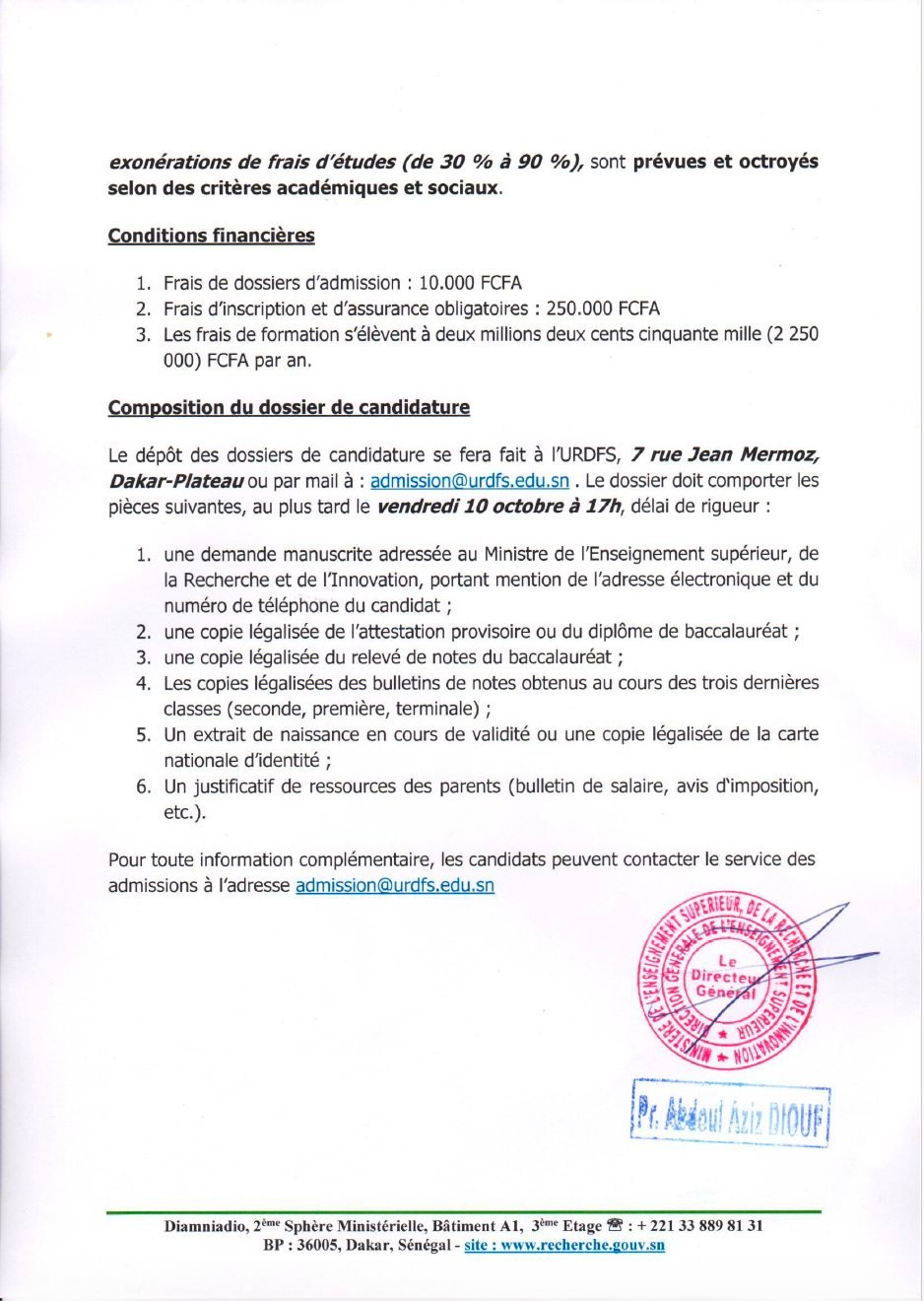 Pour plus d’informations : admission@urdfs.edu.sn ou appeler au 33 920 920 40.