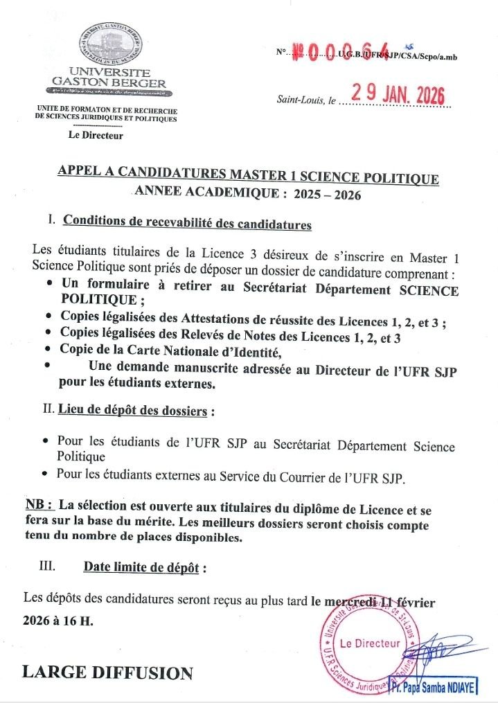 ๐ ๐๐๐), lance un ๐๐ฉ๐ฉ๐๐ฅ ๐ฬ ๐๐๐ง๐๐ข๐๐๐ญ๐ฎ๐ซ๐๐ฌ pour lโadmission en ๐๐๐ฌ๐ญ๐๐ซ ๐ ๐๐๐ข๐๐ง๐๐ ๐๐จ๐ฅ๐ข๐ญ๐ข๐ช๐ฎ๐ au titre de lโ๐๐ง๐ง๐ฬ๐ ๐๐๐๐๐ฬ๐ฆ๐ข๐ช๐ฎ๐ ๐๐๐๐-๐๐๐๐.