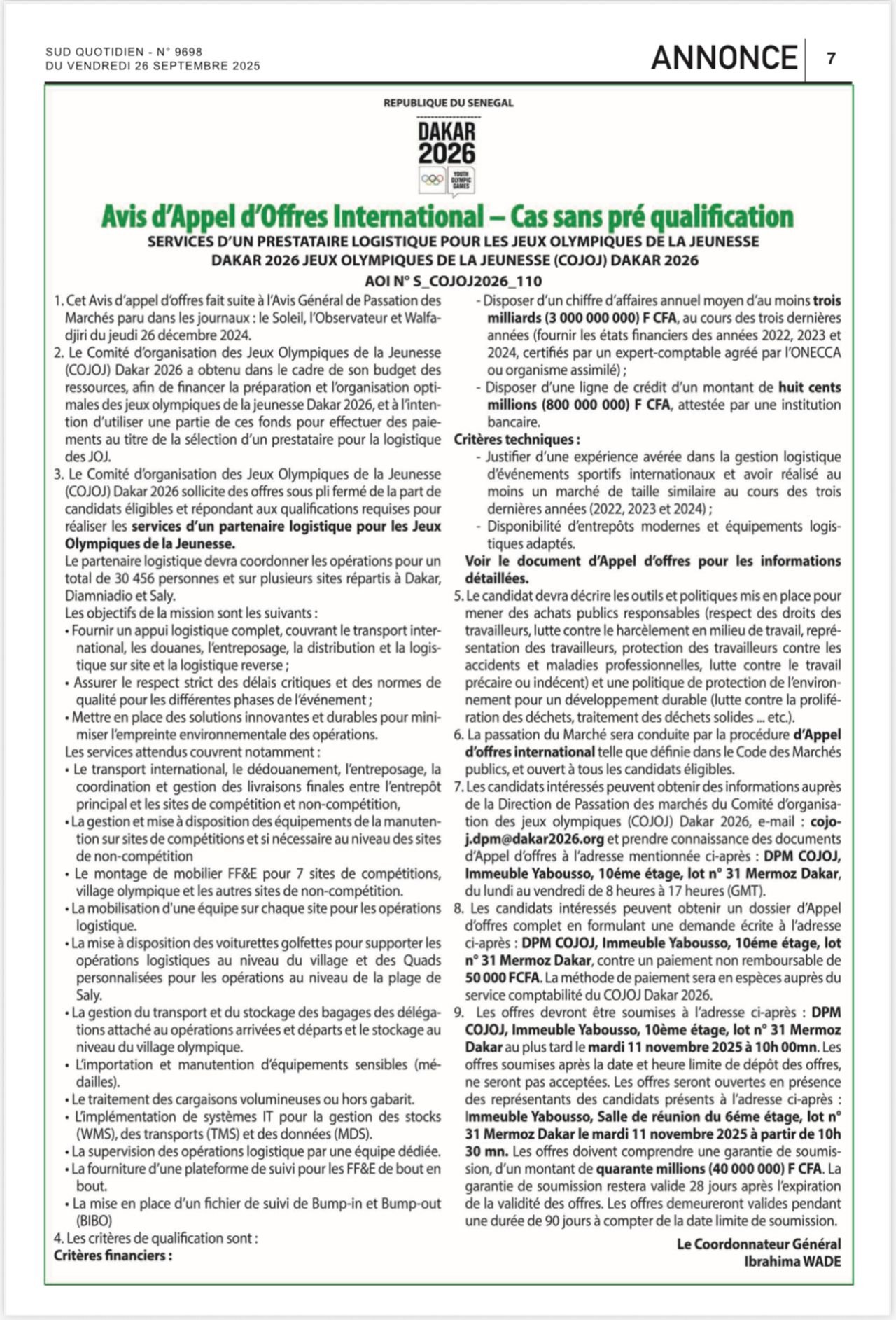 📍 Dossier disponible auprès du COJOJ (Immeuble Yabousso, Mermoz, Dakar) ou par mail : cojoj.dpm@dakar2026.org