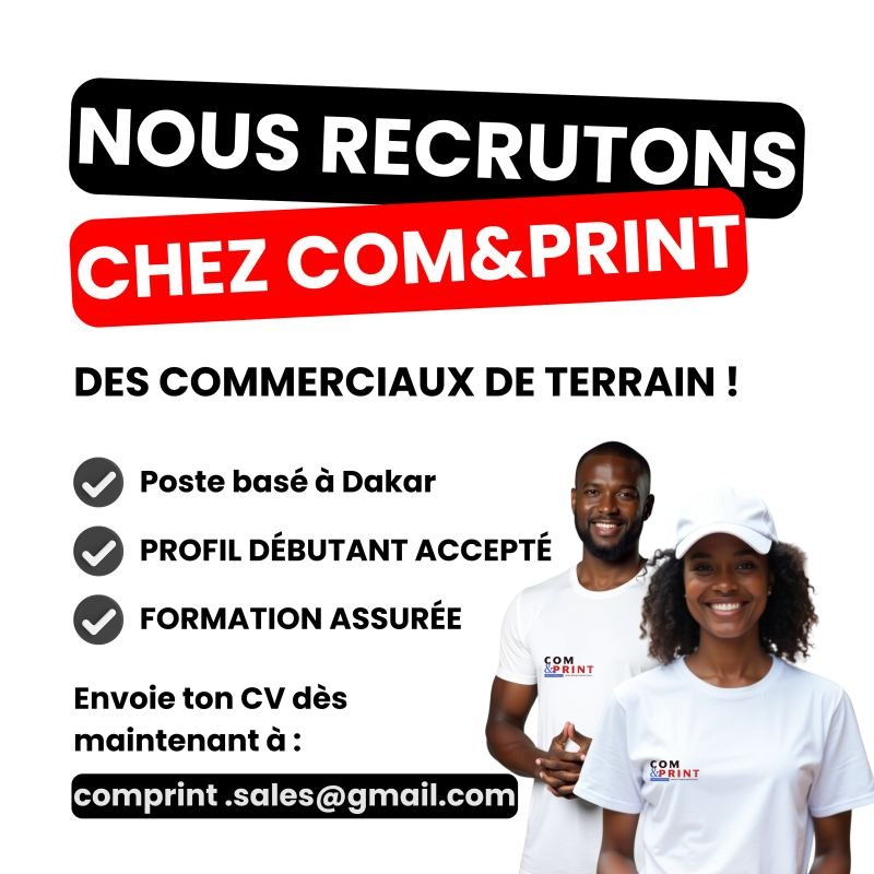 COM & PRINT Multiservices recrute des commerciaux dynamiques pour rejoindre son équipe à Dakar !
