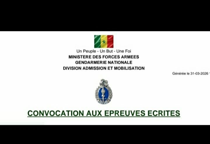 DÉSORMAIS LES CONVOCATIONS AUX ÉPREUVES ÉCRITES SONT DISPONIBLES SUR LA PLATEFORME esogn.gendarmerie.sn