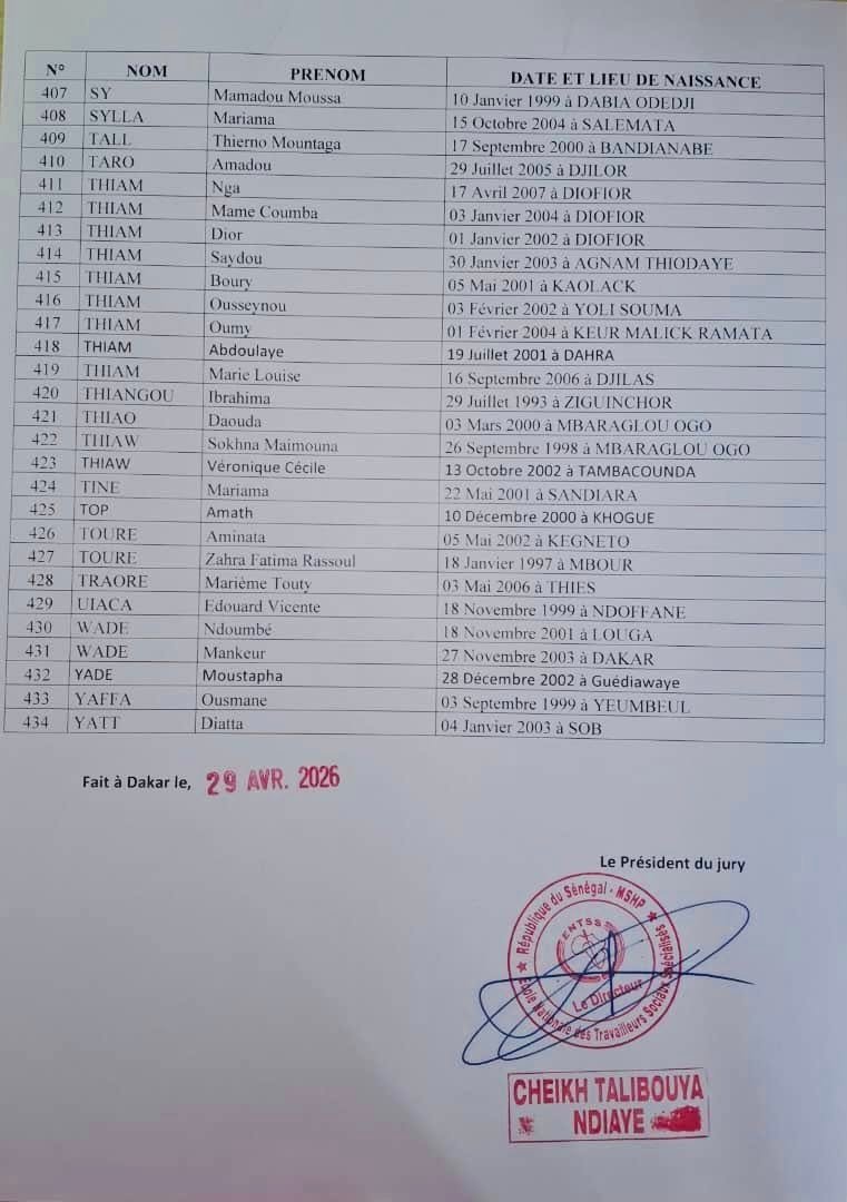 L’épreuve écrite aura lieu le dimanche 03 mai 2026 à 7h30 à la FASEG (UCAD ll). Les candidats sont priés de s’y présenter munis de la carte nationale d’identité.
