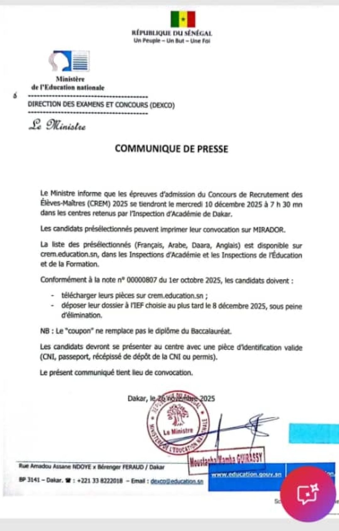 CREM 2025 : Les Résultats des épreuves de pré-sélection sont disponibles