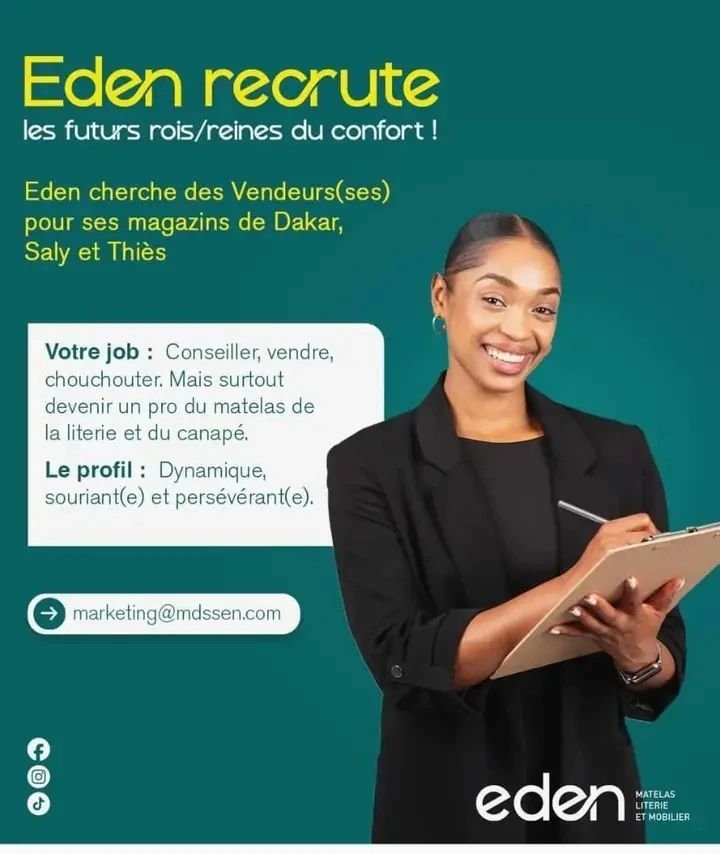 EDEN recherche des vendeur(se)s pour ses magasins de Dakar, Saly et Thiès.