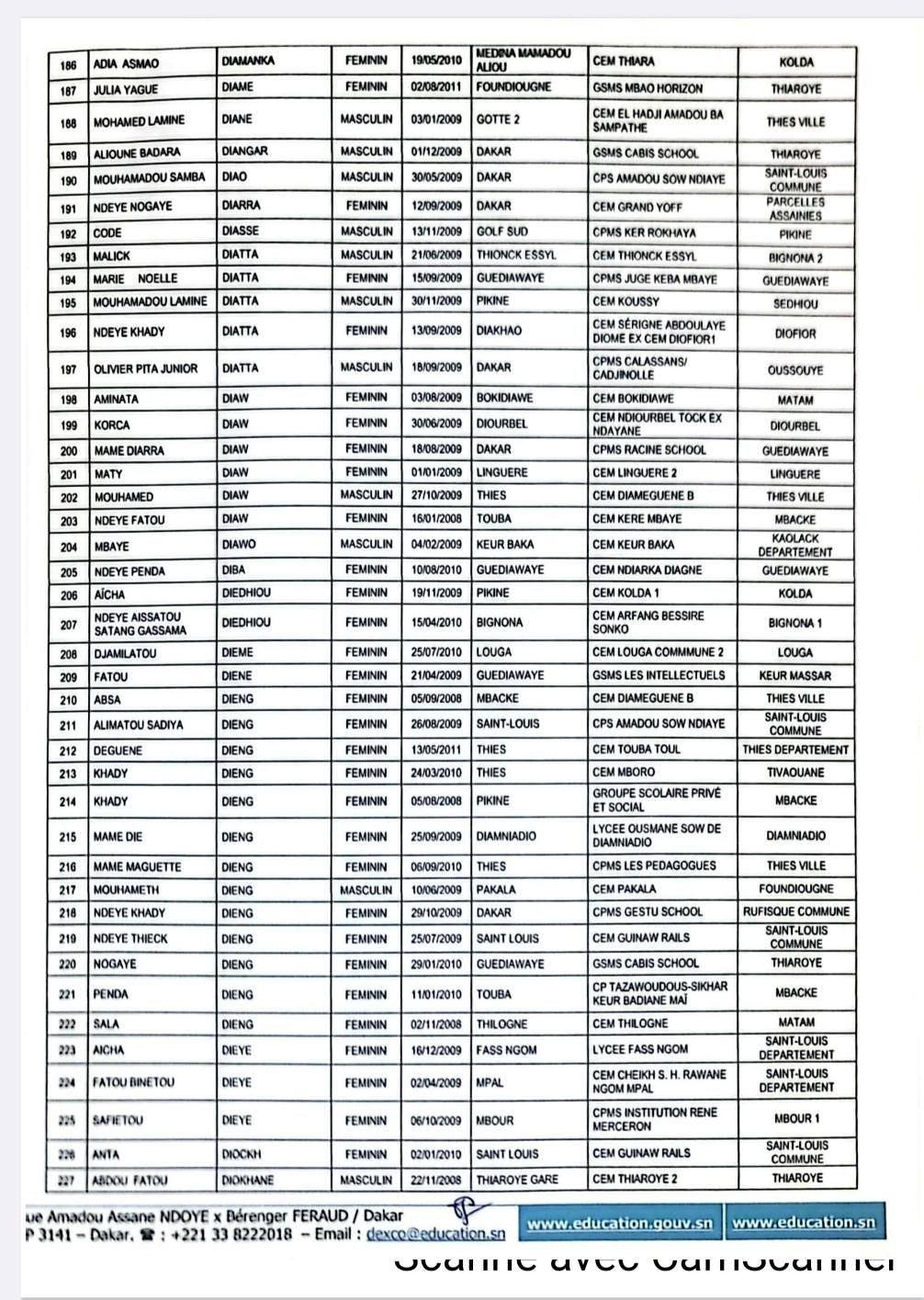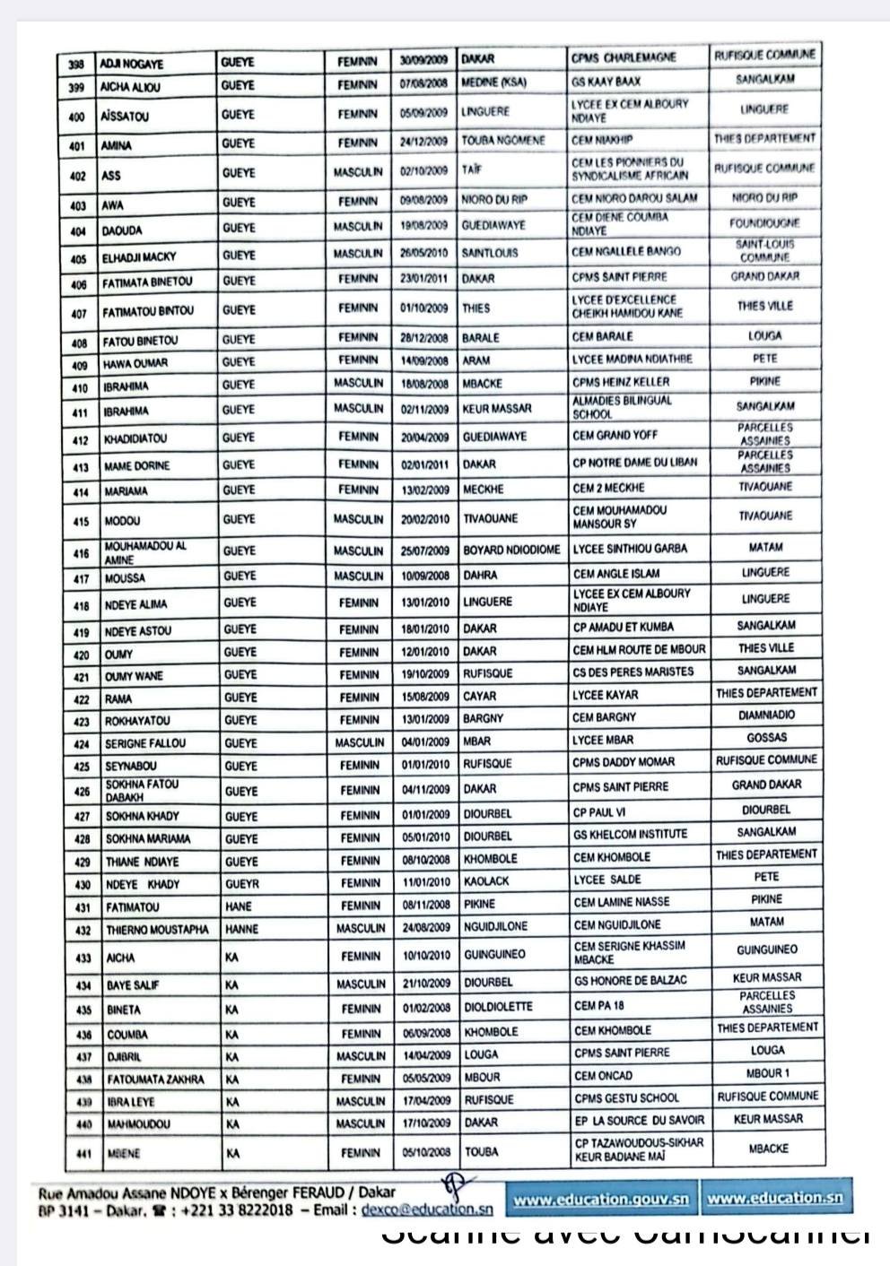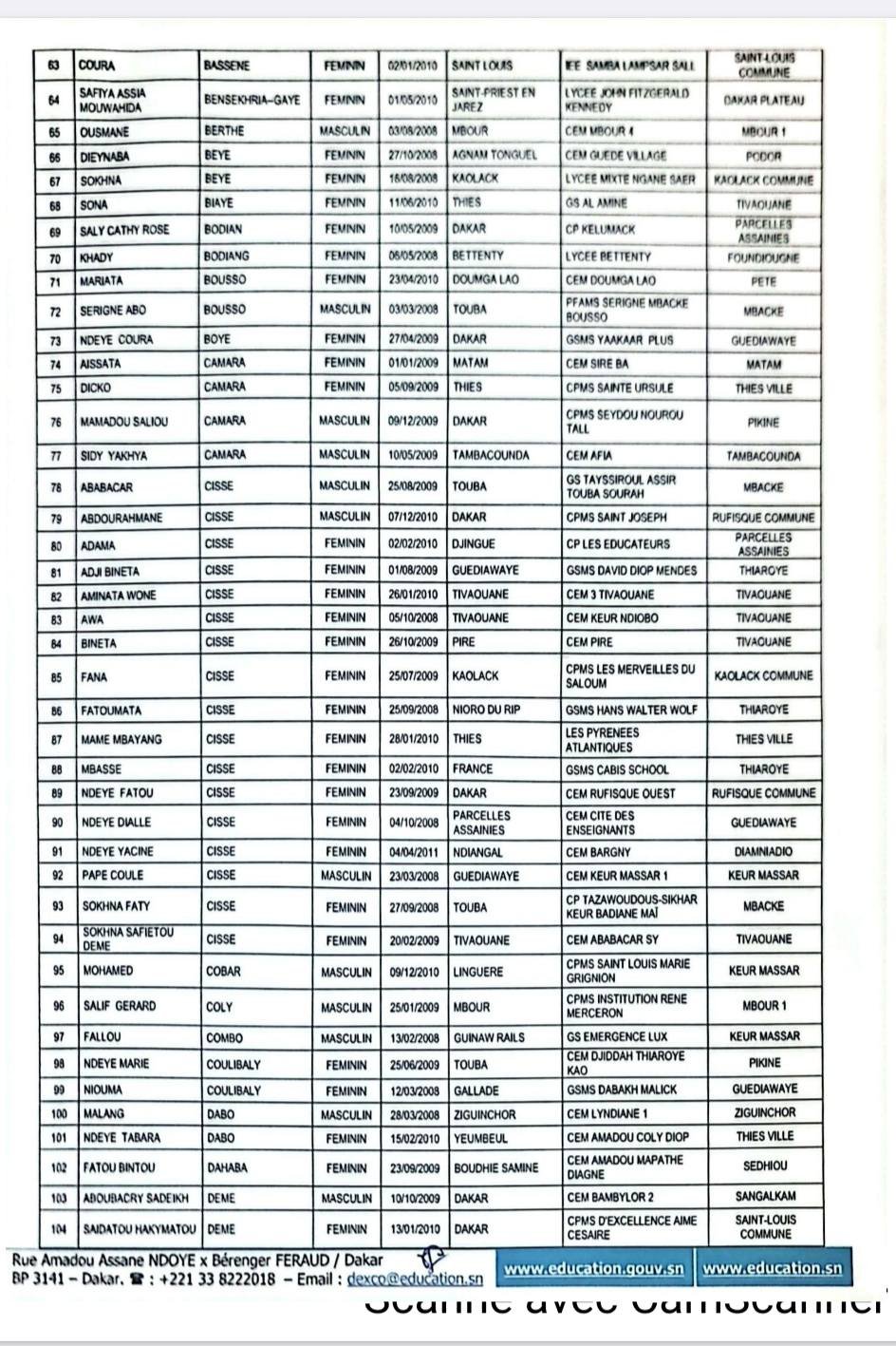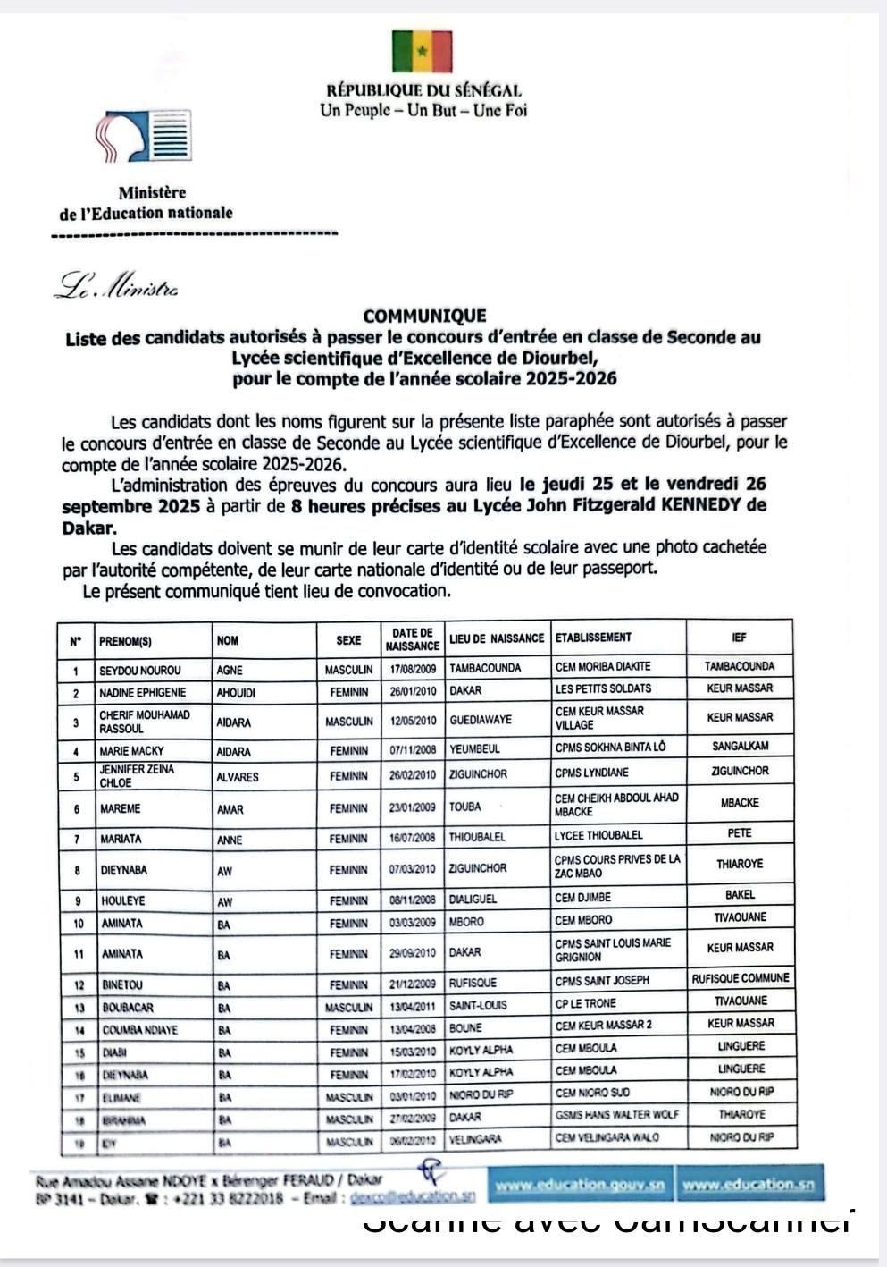 Liste des candidats autorisés à passer le concours d’entrée en classe de Seconde au