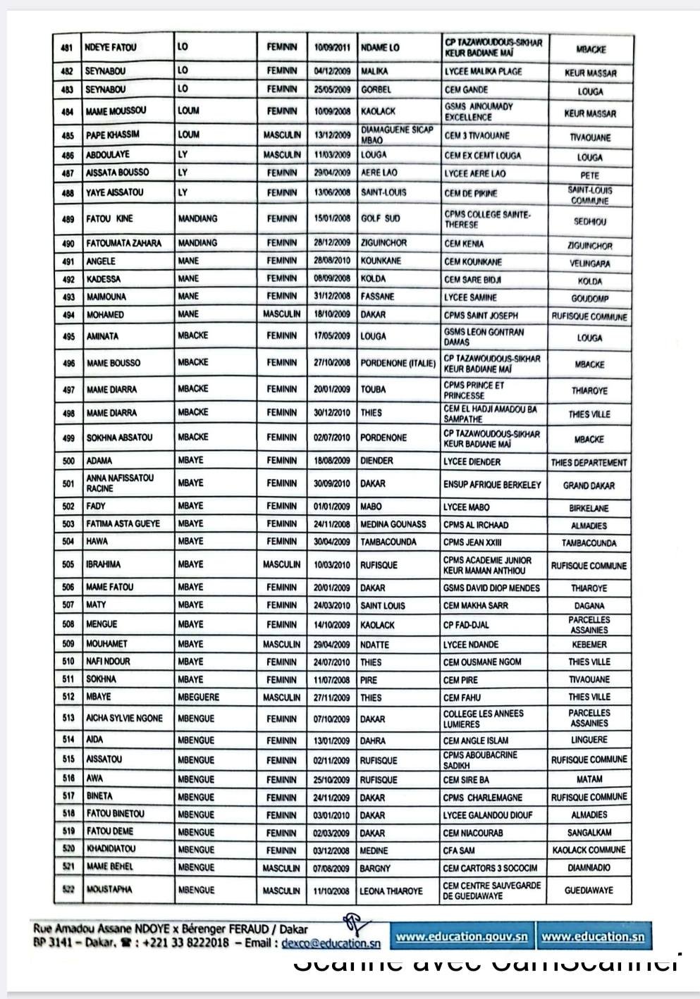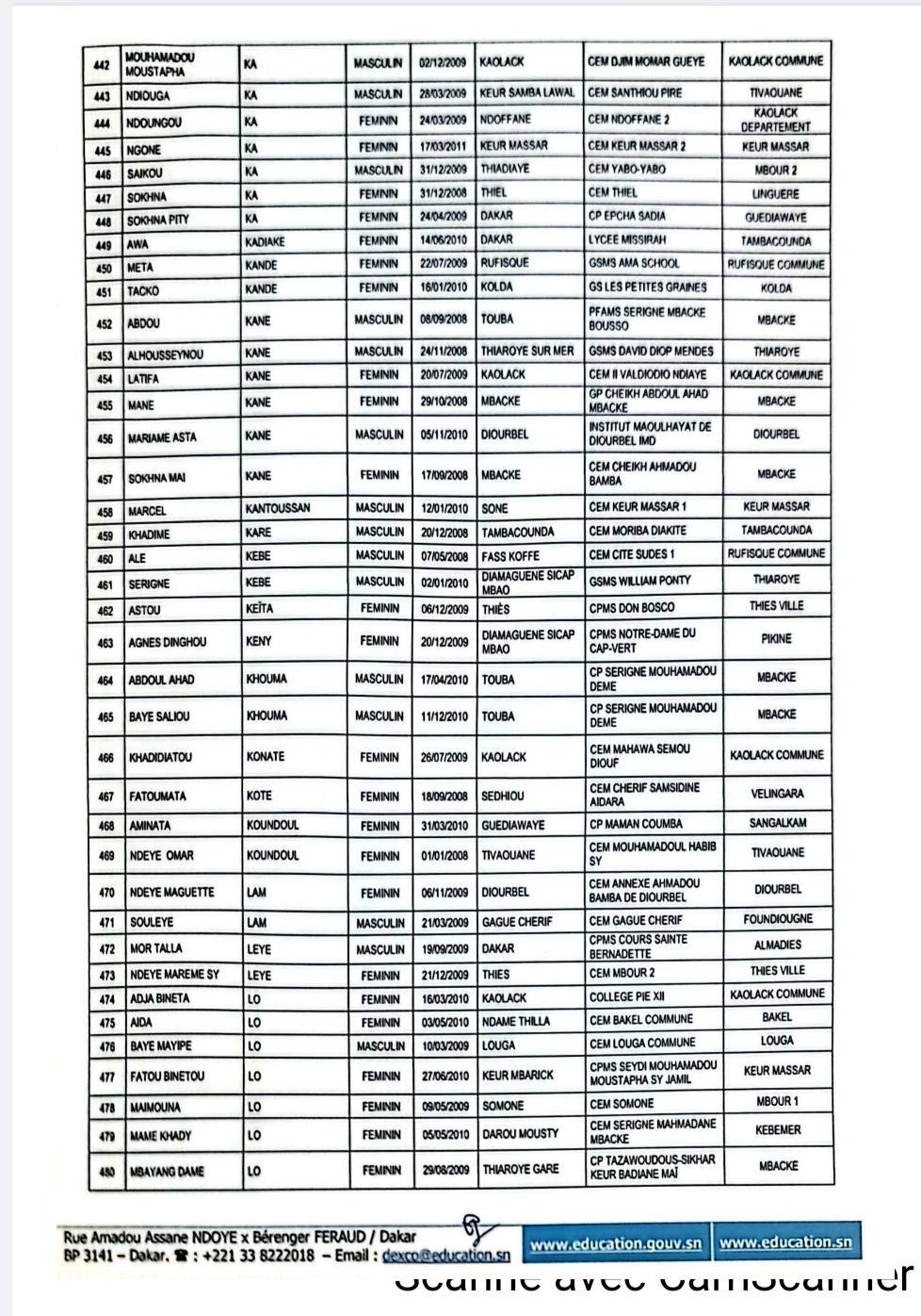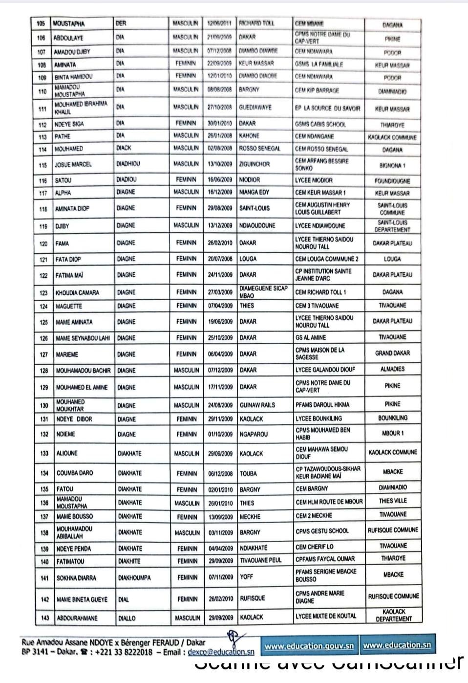 Liste des candidats autorisés à passer le concours d’entrée en classe de Seconde au