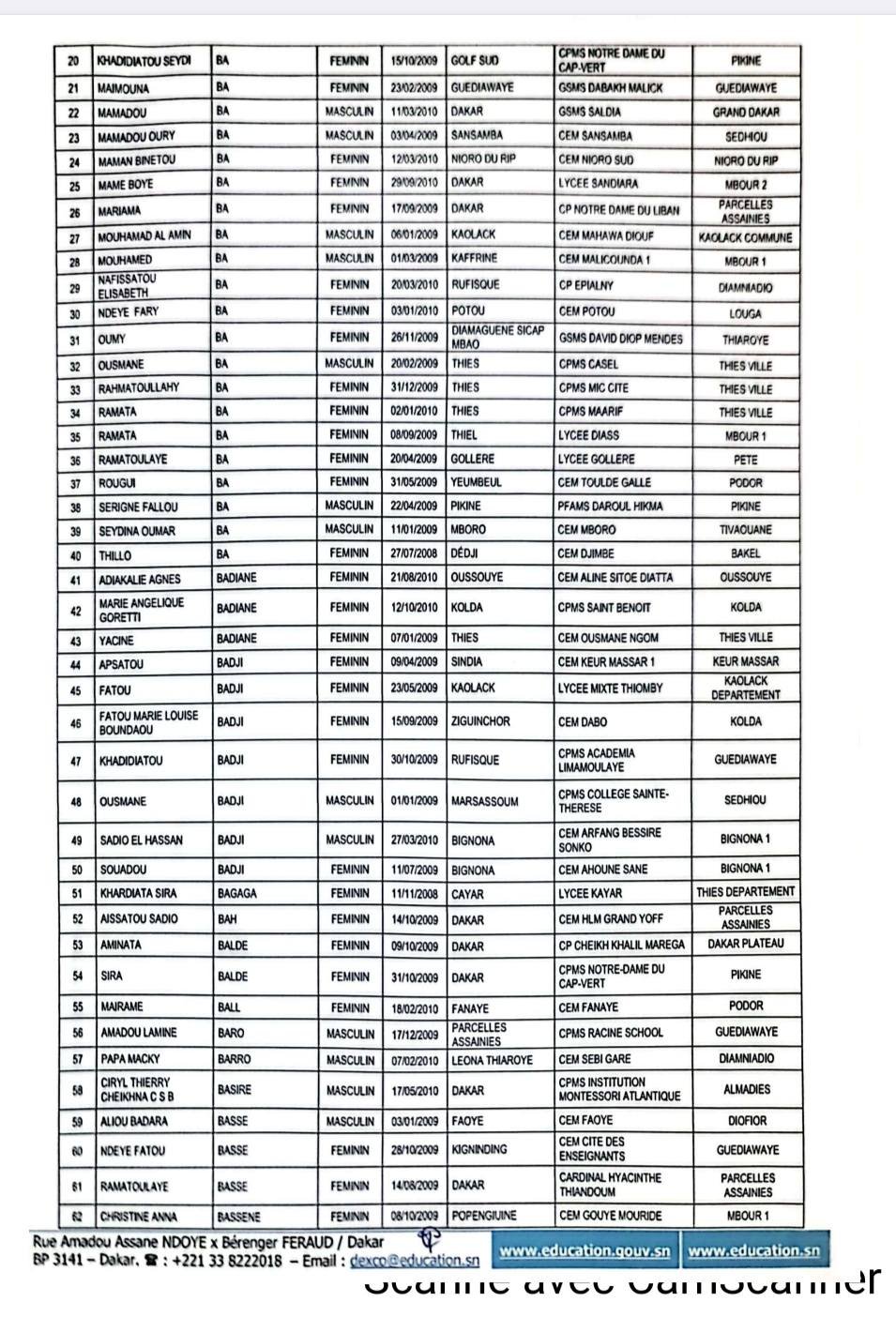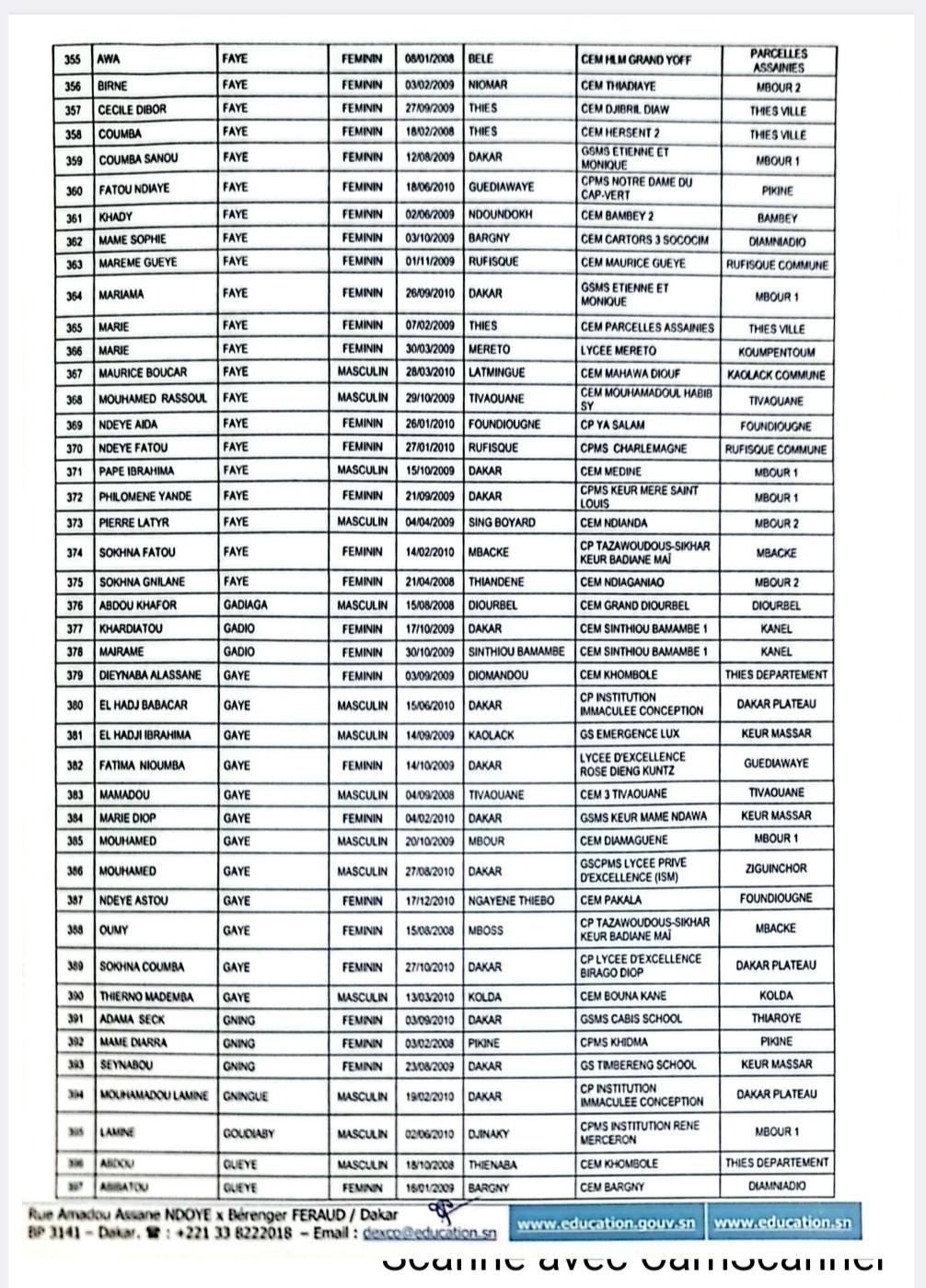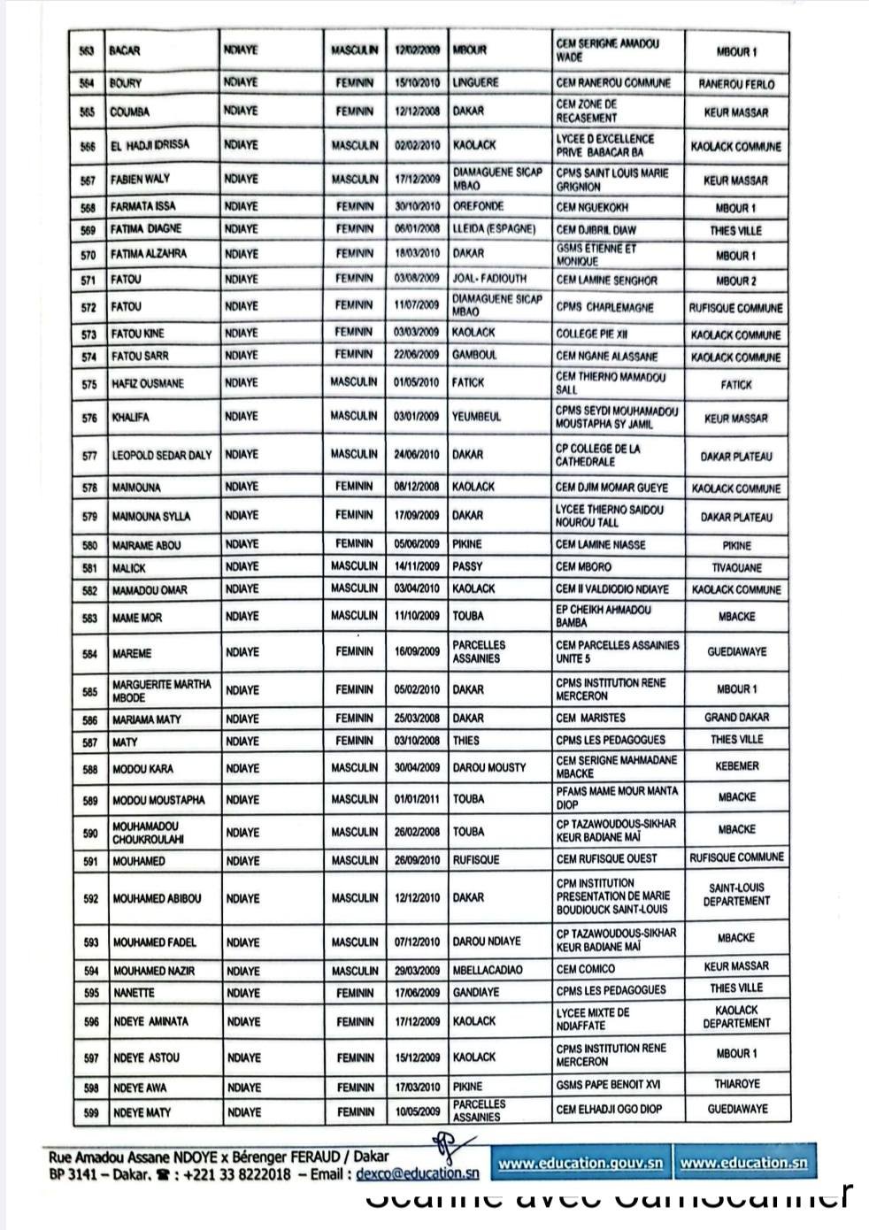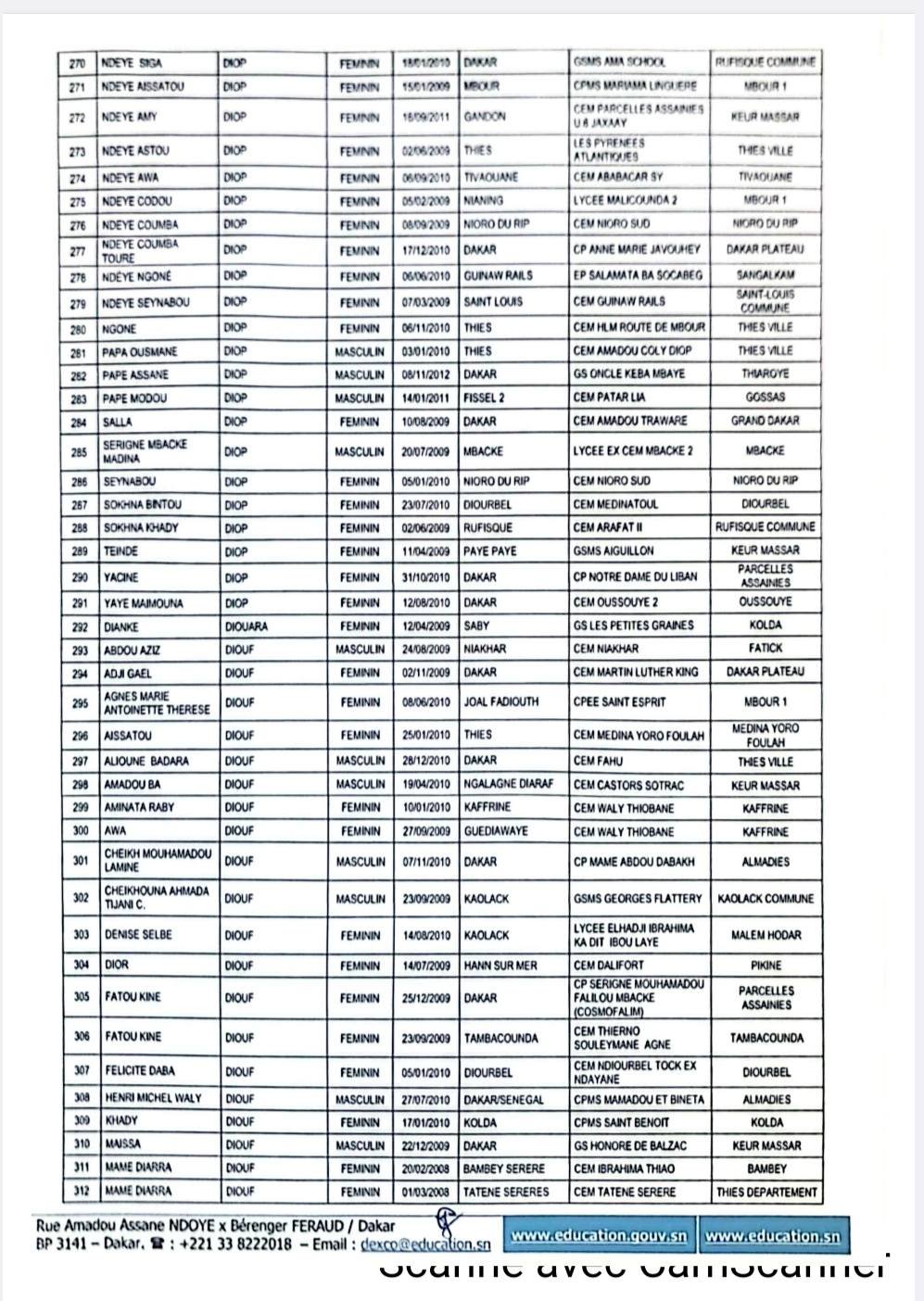 Liste des candidats autorisés à passer le concours d’entrée en classe de Seconde au