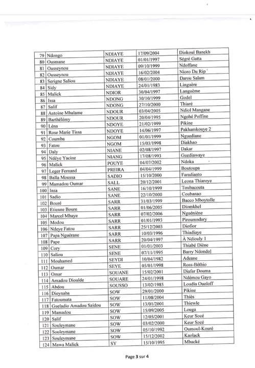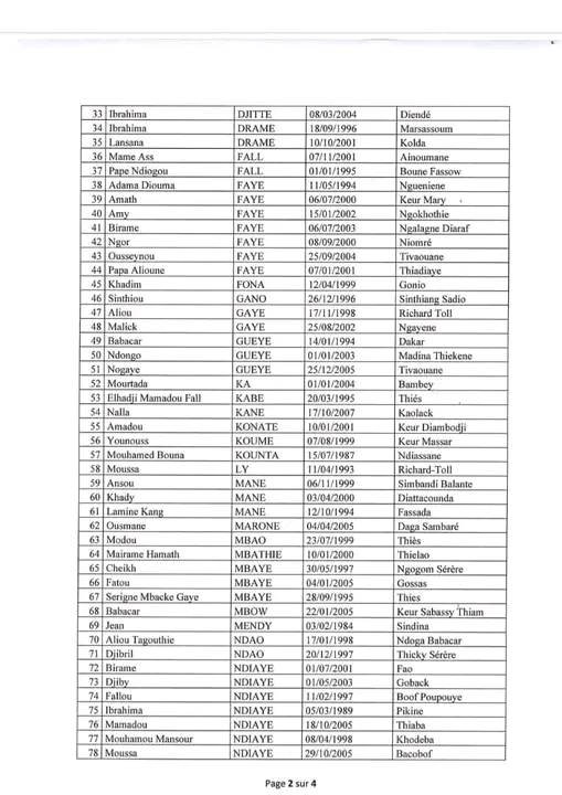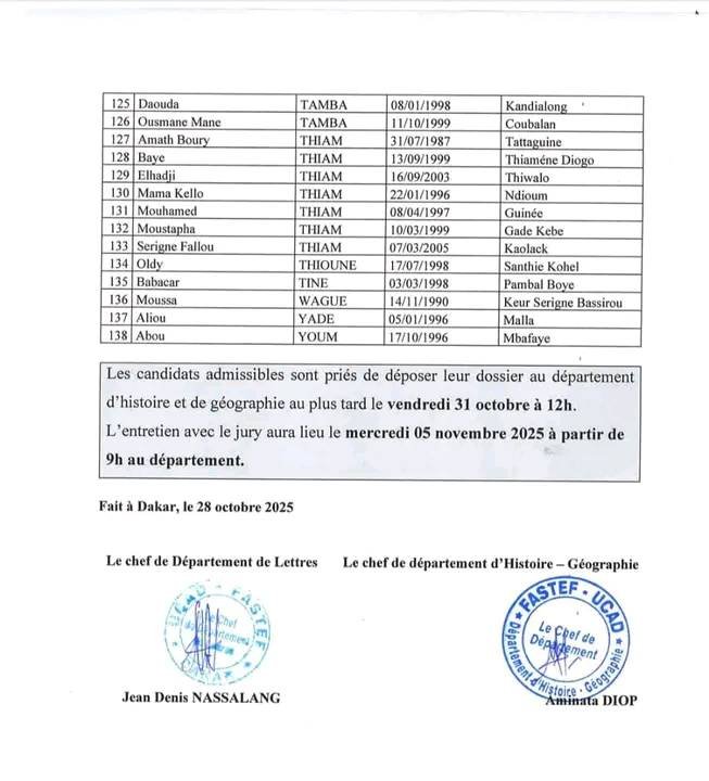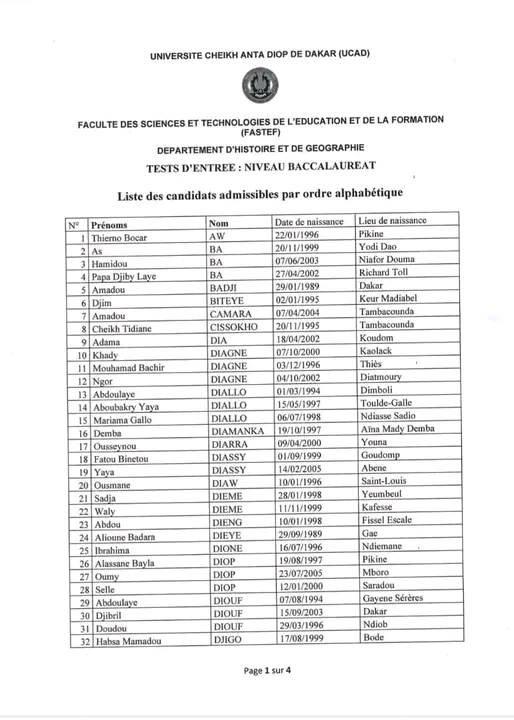 FASTEF_2025 La liste des candidats admis admissibles au niveau BAC, option Histoire-Géographie