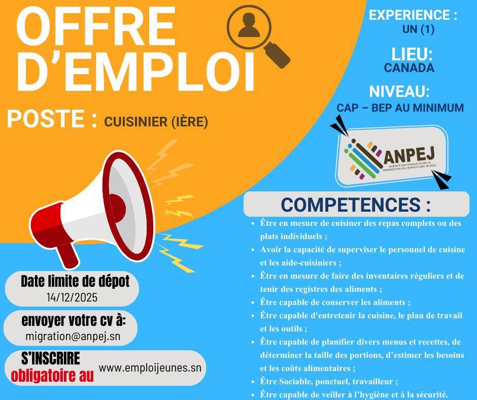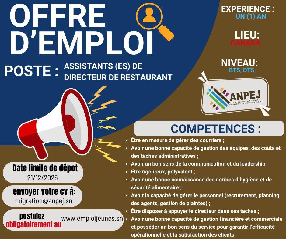 L’ANPEJ recrute, pour un de ses partenaires basé au CANADA