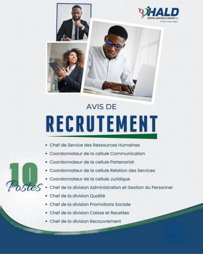 ๐—Ÿโ€™๐—›๐—”๐—Ÿ๐—— ๐—ฟ๐—ฒ๐—ฐ๐—ฟ๐˜‚๐˜๐—ฒ Lโ€™Hรดpital Aristide Le Dantec (๐‡๐€๐‹๐ƒ) lance un ๐š๐ฉ๐ฉ๐ž๐ฅ ๐šฬ€ ๐œ๐š๐ง๐๐ข๐๐š๐ญ๐ฎ๐ซ๐ž๐ฌ ๐จ๐ฎ๐ฏ๐ž๐ซ๐ญ pour les postes suivants : ใƒป๐‚๐ก๐ž๐Ÿ ๐๐ž ๐’๐ž๐ซ๐ฏ๐ข๐œ๐ž ๐๐ž๐ฌ ๐‘๐ž๐ฌ๐ฌ๐จ๐ฎ๐ซ๐œ๐ž๐ฌ ๐‡๐ฎ๐ฆ๐š๐ข๐ง๐ž๐ฌ ใƒป๐‚๐จ๐จ๐ซ๐๐จ๐ง๐ง๐š๐ญ๐ž๐ฎ๐ซ ๐๐ž ๐ฅ๐š ๐œ๐ž๐ฅ๐ฅ๐ฎ๐ฅ๐ž ๐‚๐จ๐ฆ๐ฆ๐ฎ๐ง๐ข๐œ๐š๐ญ๐ข๐จ๐ง ใƒป๐‚๐จ๐จ๐ซ๐๐จ๐ง๐ง๐š๐ญ๐ž๐ฎ๐ซ ๐๐ž ๐ฅ๐š ๐œ๐ž๐ฅ๐ฅ๐ฎ๐ฅ๐ž ๐๐š๐ซ๐ญ๐ž๐ง๐š๐ซ๐ข๐š๐ญ ใƒป๐‚๐จ๐จ๐ซ๐๐จ๐ง๐ง๐š๐ญ๐ž๐ฎ๐ซ ๐๐ž ๐ฅ๐š ๐œ๐ž๐ฅ๐ฅ๐ฎ๐ฅ๐ž ๐‘๐ž๐ฅ๐š๐ญ๐ข๐จ๐ง ๐๐ž๐ฌ ๐’๐ž๐ซ๐ฏ๐ข๐œ๐ž๐ฌ ใƒป๐‚๐จ๐จ๐ซ๐๐จ๐ง๐ง๐š๐ญ๐ž๐ฎ๐ซ ๐๐ž ๐ฅ๐š ๐œ๐ž๐ฅ๐ฅ๐ฎ๐ฅ๐ž ๐‰๐ฎ๐ซ๐ข๐๐ข๐ช๐ฎ๐ž ใƒป๐‚๐ก๐ž๐Ÿ ๐๐ž ๐ฅ๐š ๐๐ข๐ฏ๐ข๐ฌ๐ข๐จ๐ง ๐€๐๐ฆ๐ข๐ง๐ข๐ฌ๐ญ๐ซ๐š๐ญ๐ข๐จ๐ง ๐ž๐ญ ๐†๐ž๐ฌ๐ญ๐ข๐จ๐ง ๐๐ฎ ๐๐ž๐ซ๐ฌ๐จ๐ง๐ง๐ž๐ฅ ใƒป๐‚๐ก๐ž๐Ÿ ๐๐ž ๐ฅ๐š ๐๐ข๐ฏ๐ข๐ฌ๐ข๐จ๐ง ๐๐ฎ๐š๐ฅ๐ข๐ญ๐žฬ ใƒป๐‚๐ก๐ž๐Ÿ ๐๐ž ๐ฅ๐š ๐๐ข๐ฏ๐ข๐ฌ๐ข๐จ๐ง ๐๐ซ๐จ๐ฆ๐จ๐ญ๐ข๐จ๐ง ๐’๐จ๐œ๐ข๐š๐ฅ๐ž ใƒป๐‚๐ก๐ž๐Ÿ ๐๐ž ๐ฅ๐š ๐๐ข๐ฏ๐ข๐ฌ๐ข๐จ๐ง ๐‚๐š๐ข๐ฌ๐ฌ๐ž ๐ž๐ญ ๐‘๐ž๐œ๐ž๐ญ๐ญ๐ž๐ฌ ใƒป๐‚๐ก๐ž๐Ÿ ๐๐ž ๐ฅ๐š ๐๐ข๐ฏ๐ข๐ฌ๐ข๐จ๐ง ๐‘๐ž๐œ๐จ๐ฎ๐ฏ๐ซ๐ž๐ฆ๐ž๐ง๐ญ Clรดture des candidatures : ๐ฃ๐ž๐ฎ๐๐ข ๐Ÿ๐Ÿ— ๐ฆ๐š๐ซ๐ฌ ๐Ÿ๐ŸŽ๐Ÿ๐Ÿ” ๐šฬ€ ๐Ÿ๐Ÿ–๐ก ๐†๐Œ๐“ Candidature : CV et lettre de motivation ร  envoyer ร  ๐Ÿ“ฉ ๐ฌ๐ซ๐ก๐ก๐š๐ฅ๐๐Ÿ๐ŸŽ๐Ÿ๐Ÿ“@๐ ๐ฆ๐š๐ข๐ฅ.๐œ๐จ๐ฆ Objet du mail : ๐ˆ๐ง๐ญ๐ข๐ญ๐ฎ๐ฅ๐žฬ ๐๐ฎ ๐ฉ๐จ๐ฌ๐ญ๐ž
