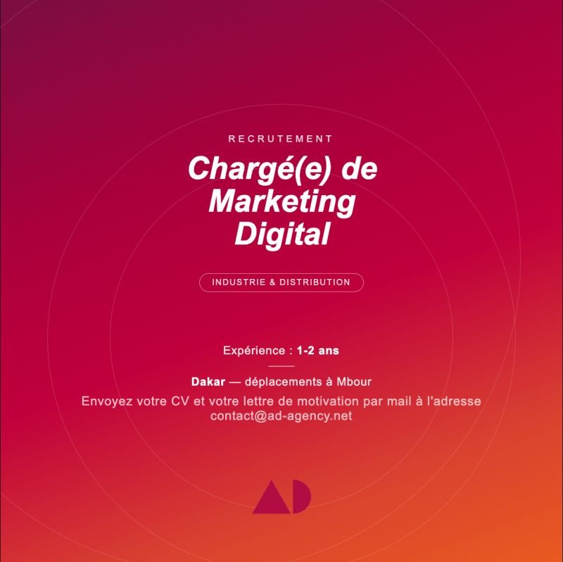 Chargé(e) de Marketing Digital — Dakar, Sénégal avec des déplacements ponctuels à Mbour