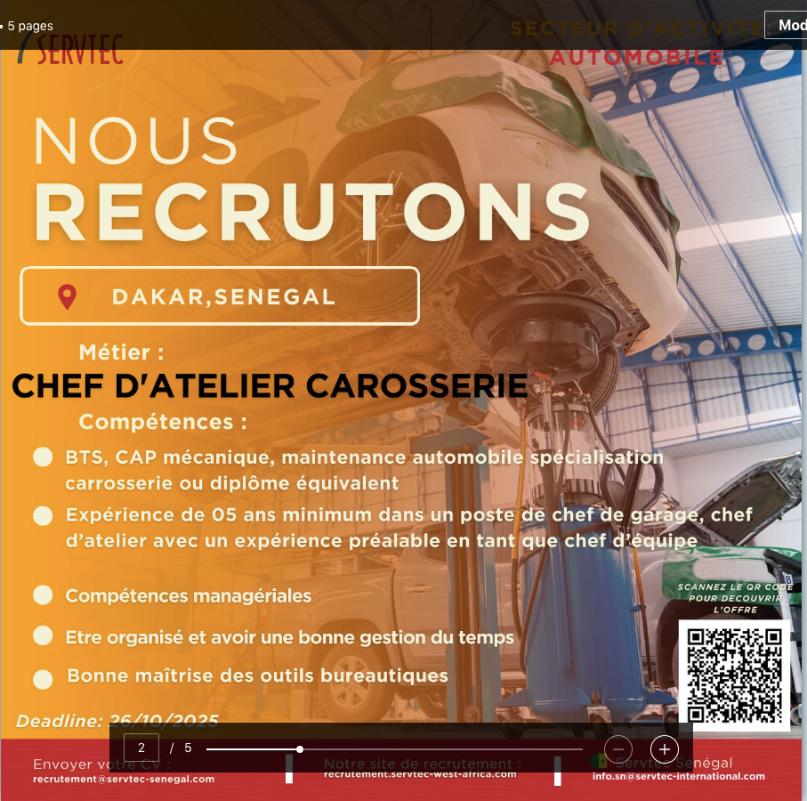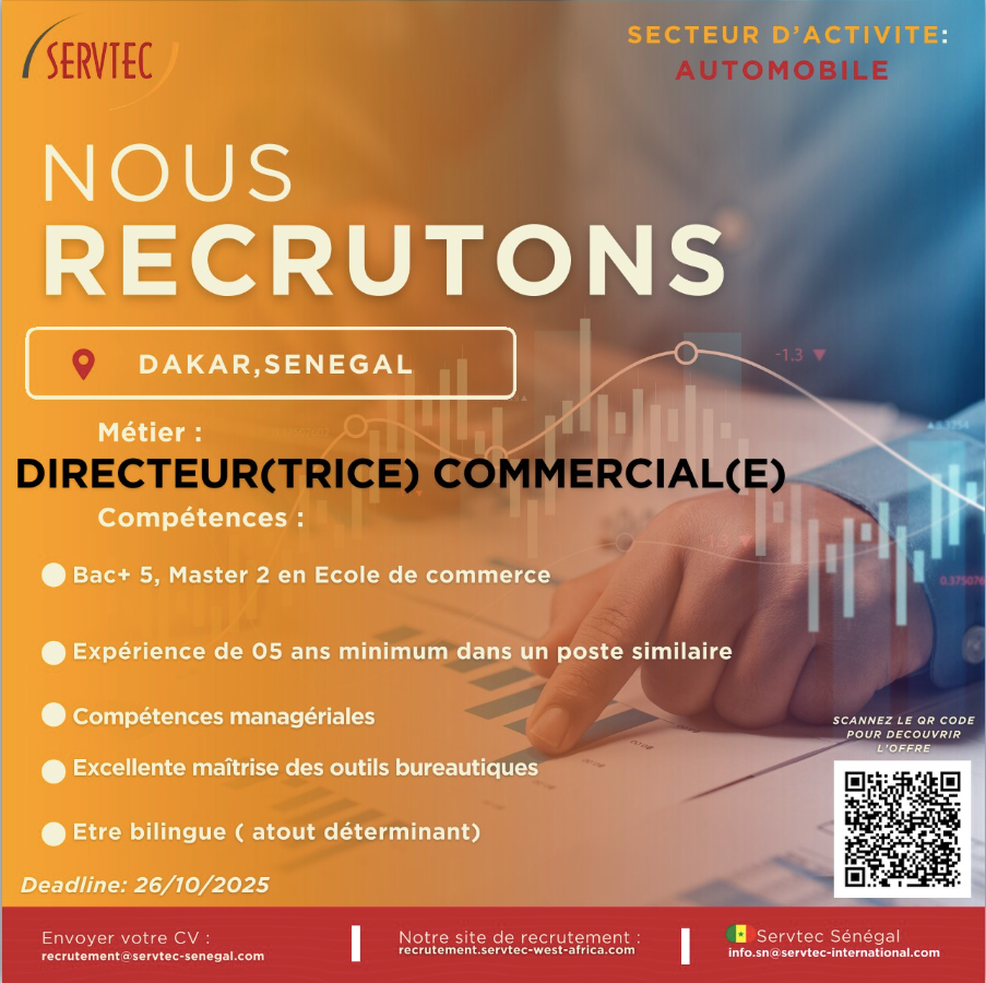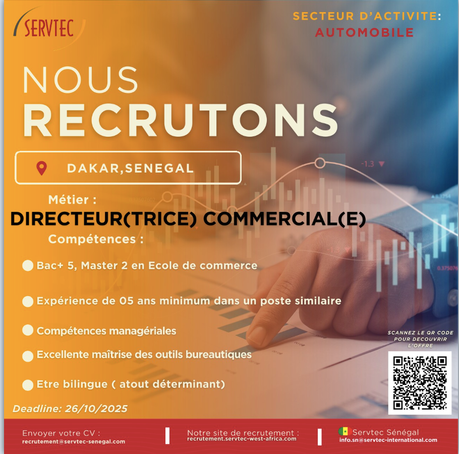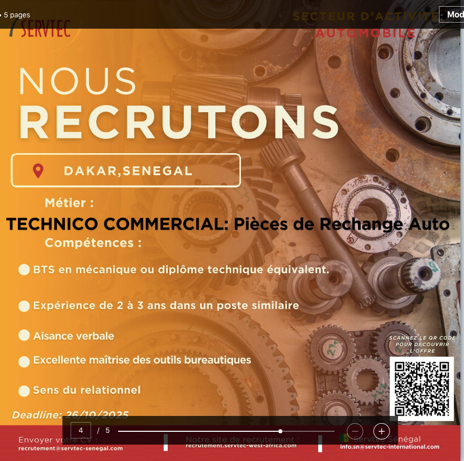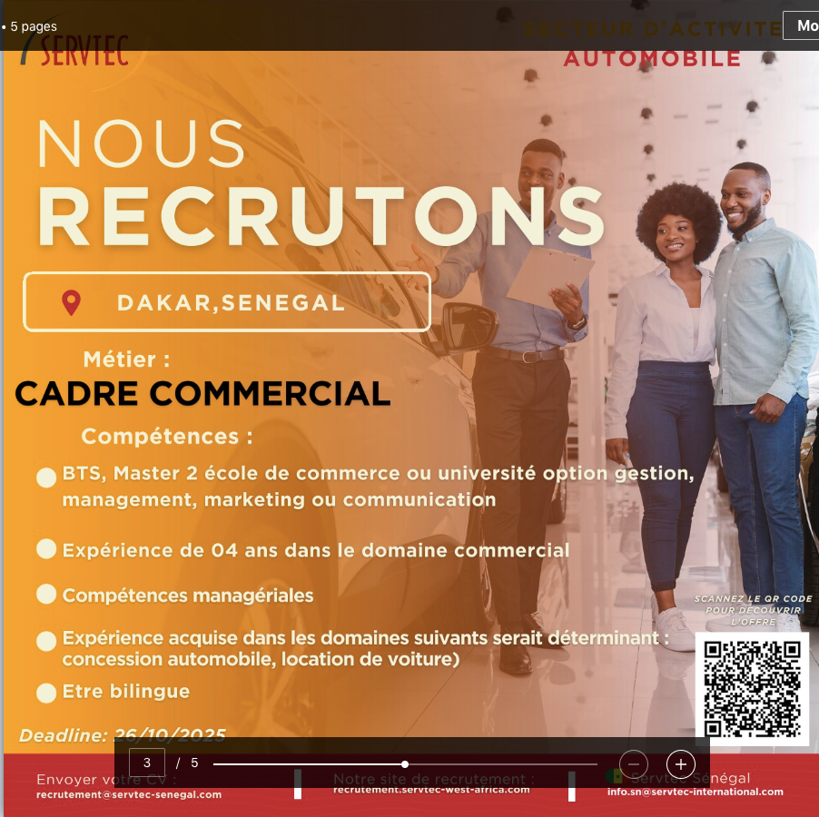 SERVTEC SENEGAL recrute sur plusieurs postes pour un de ses clients รฉvoluant dans la vente automobile: