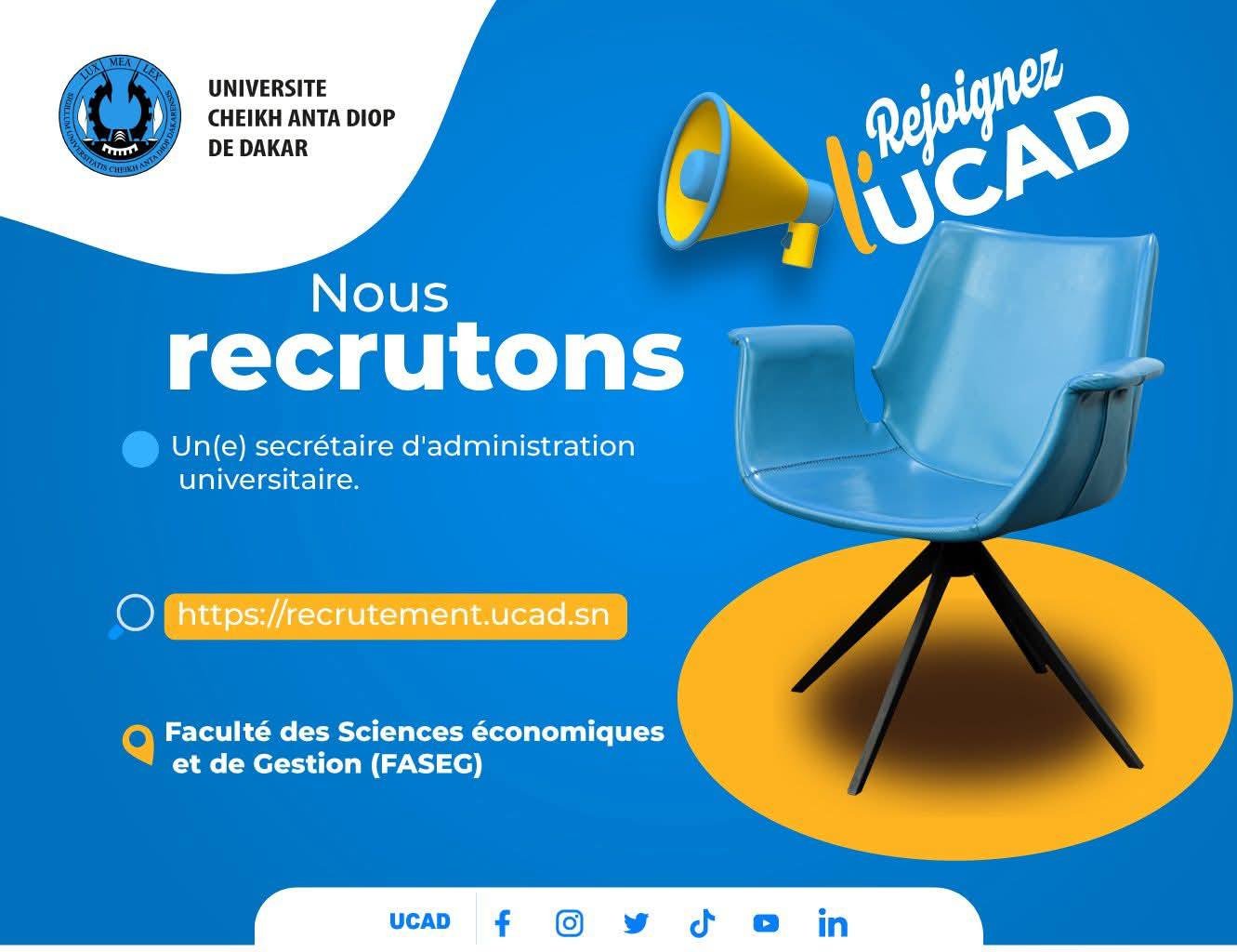 ๐๐๐๐) de lโUniversitรฉ Cheikh Anta Diop de Dakar lance un ๐๐ฉ๐ฉ๐๐ฅ ๐ฬ ๐๐๐ง๐๐ข๐๐๐ญ๐ฎ๐ซ๐๐ฌ pour le ๐ซ๐๐๐ซ๐ฎ๐ญ๐๐ฆ๐๐ง๐ญ ๐๐ ๐๐๐ฎ๐ฑ (๐๐) ๐ฉ๐ซ๐จ๐๐ข๐ฅ๐ฌ :